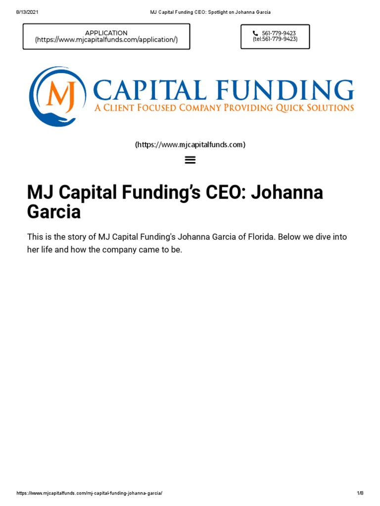 Mj Capital Funding Ceo - Spotlight On Johanna Garcia Pdf Taxes Business