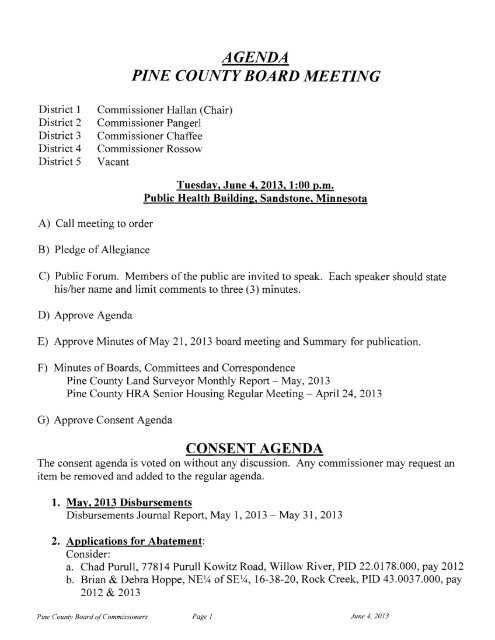 Agenda Pine County Board Meeting - Pine County Minnesota